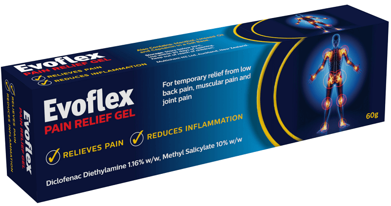 Evoflex gel contains Diclofenac - a non-steroidal, anti-inflammatory drug (NSAID) and Methyl Salicylate for a rapid cooling and soothing effect.
