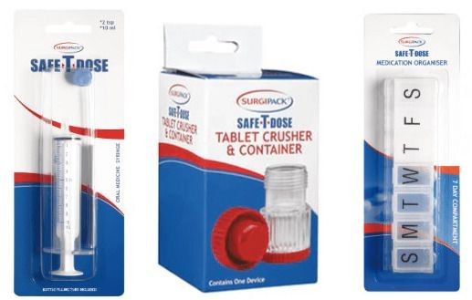 The SurgiPack Safe-T-Dose range includes products like weekly organisers, which are convenient when travelling or on the go. It also includes products such as tablet crushers, which can make taking medicines or supplements more accessible for children, people with disabilities and the elderly.